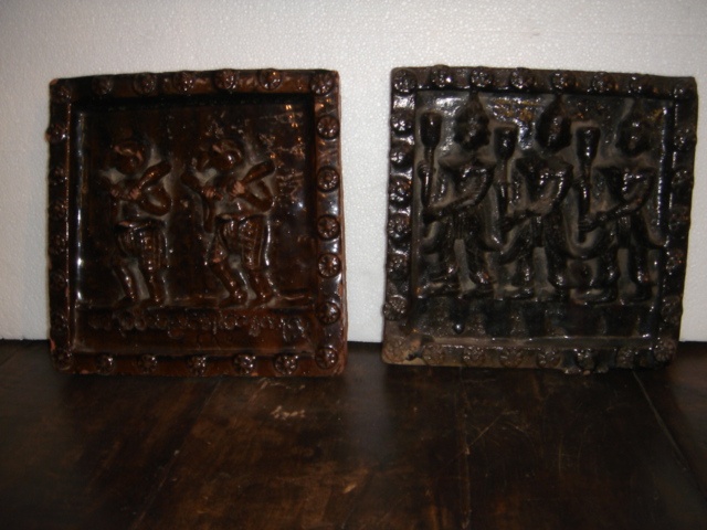 EARLY INDIAN SQUARE TILE GLAZED BROWN CERAMIC RELIEF PATTERN (X2)