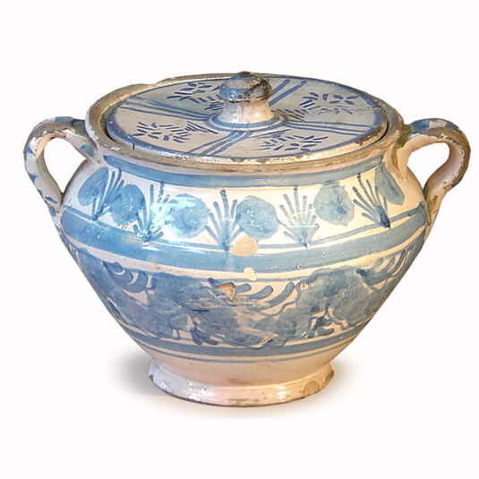 EARLY SPANISH BLUE AND WHITE CASSEROLE / BOWL AND LID