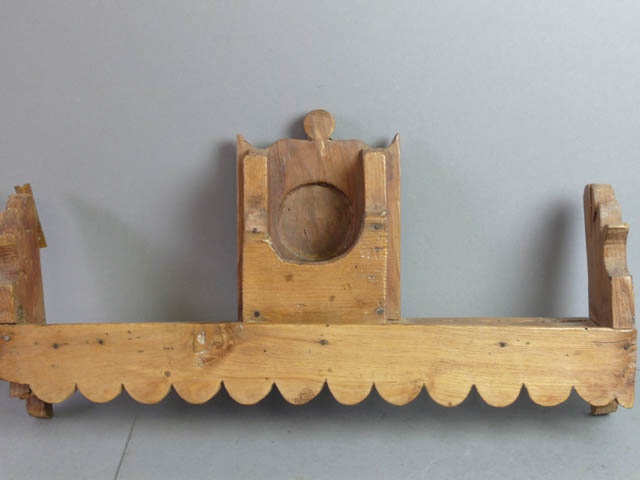 EARLY SPANISH PESTLE AND MORTAR / UTENSIL RACK WALL HANGING 58 CM WIDE