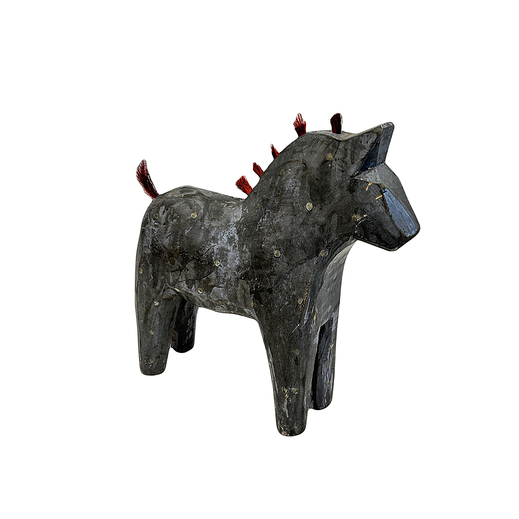 EARLY WOODEN TOY HORSE GREY WITH DOTS AND HAIR ON BACK 27 CM HIGH / 25 CM WIDE