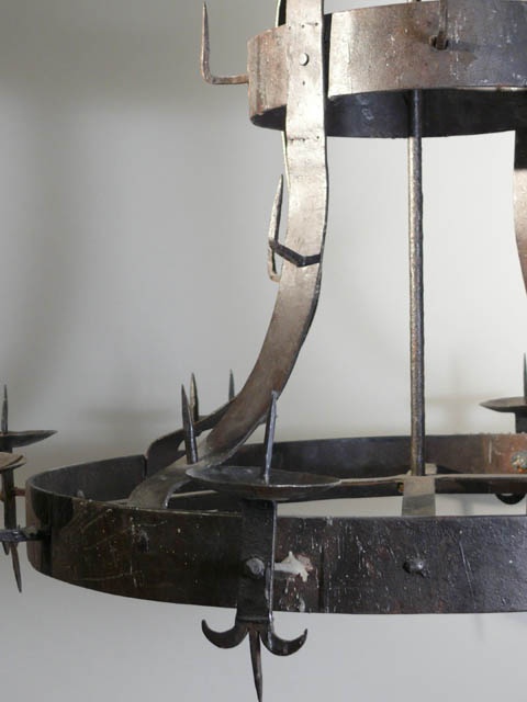 EARLY WROUGHT IRON EIGHT LIGHT PRICKET CHANDELIER 3'1/i DIAM. 94 CM 16 KG