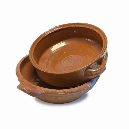 EARTHENWARE BOWL WITH TWIN HANDLES (X2)