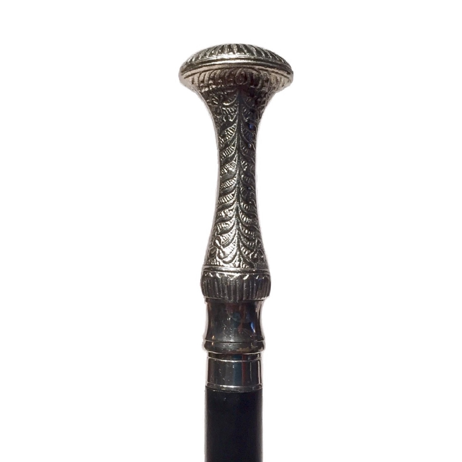 EBONY WALKING STICK / CANE WITH HEAVY SILVER METAL ORNATE LONG HANDLE