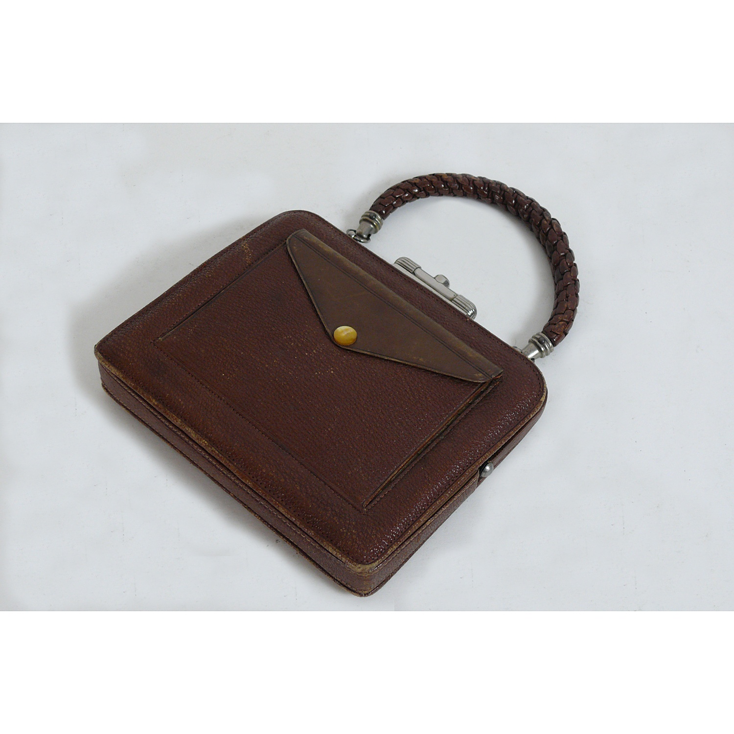 EDWARDIAN BROWN LEATHER BAG WITH MANICURE SET AND MIRROR