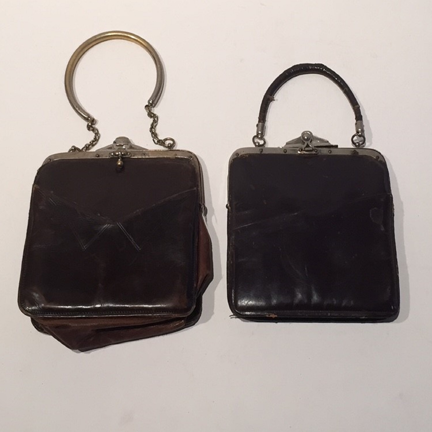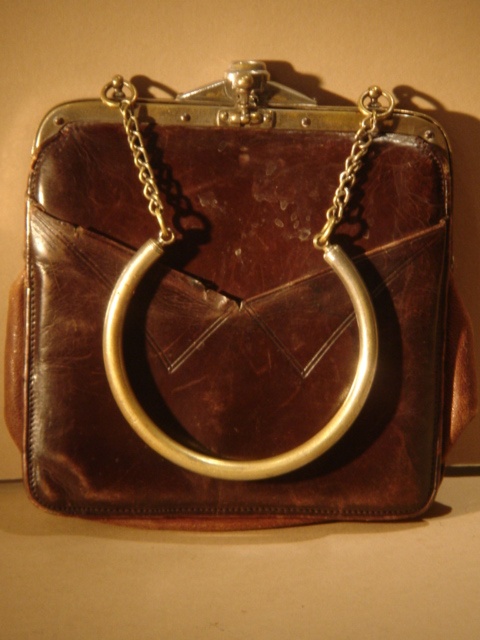 EDWARDIAN DARK TAN LEATHER HANDBAG WITH SILVER RING HANDLE 16 CM WIDE