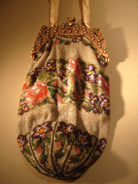 EDWARDIAN FLORAL BEADED HANDBAG WITH ORNATE TOP