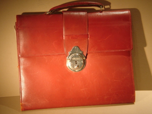 EDWARDIAN GRAINED RED LEATHER BRIEF CASE TYPE HANDBAG WITH SILVER CATCH / LOCK 28 CM WIDE