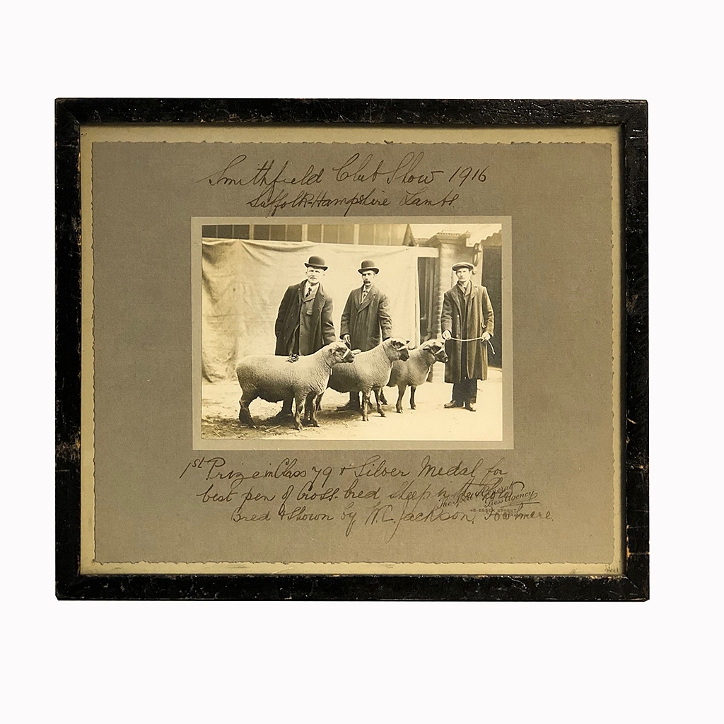 EDWARDIAN PHOTO OF PRIZE SHEEP SUFFOLK/HAMPSHIRE 1916 IN A BLACK FRAME 9.5/i X 11.5/i