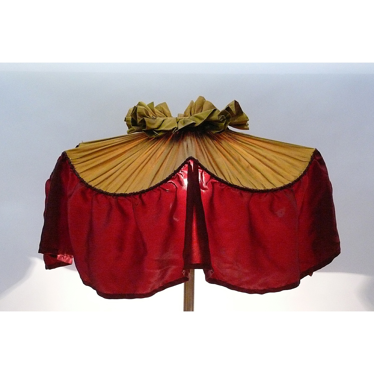 EDWARDIAN SILK LAMPSHADE GOLD WITH BURGUNDY SKIRT 62 CM DIAM. (X2)