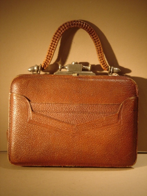 EDWARDIAN TAN LEATHER HANDBAG WITH FINE PLAITED HANDLE 20 CM WIDE