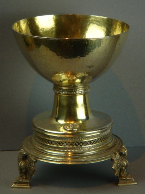 ELKINGTON CHALICE CUP SILVER GILT DRAGON FEET CIRCA 1500 7/i HIGH 18 CM