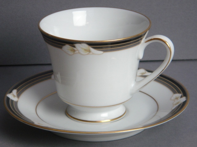 ELLINGTON NORITAKE BLACK LILY BORDER TEACUP AND SAUCER (X15)