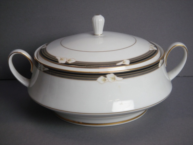 ELLINGTON NORITAKE BLACK LILY BORDER TUREEN AND LID (X2)