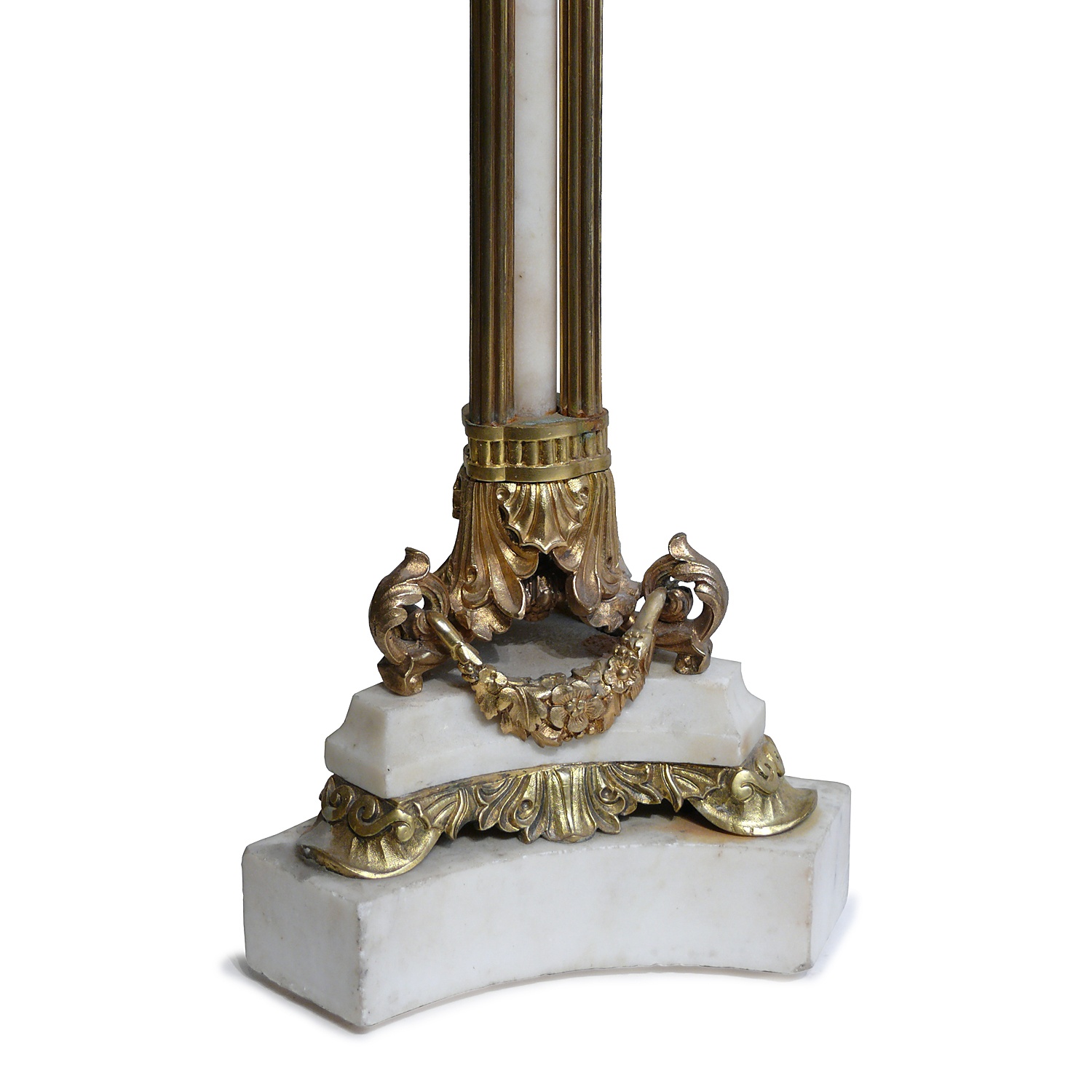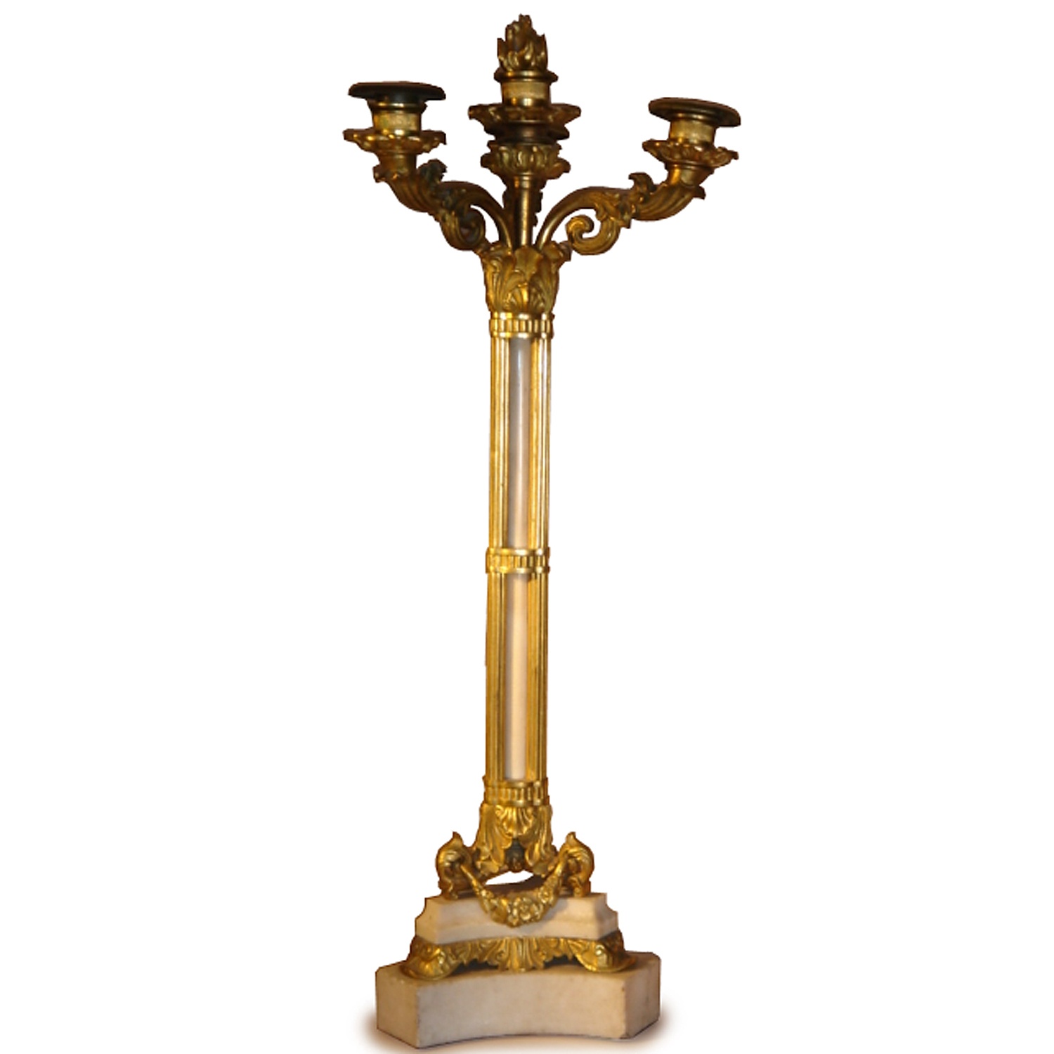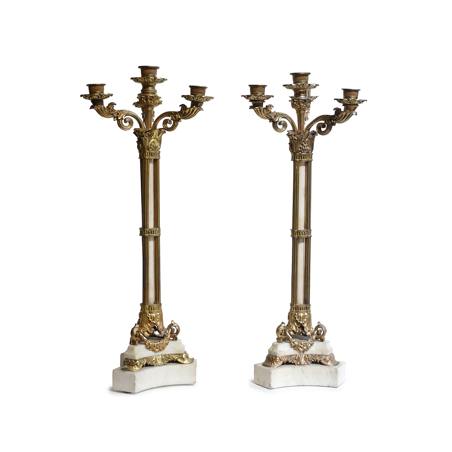 EMPIRE WHITE MARBLE AND ORMOLU CANDELABRA FOUR LIGHT 60 CM HIGH 24 CM WIDE (X2)