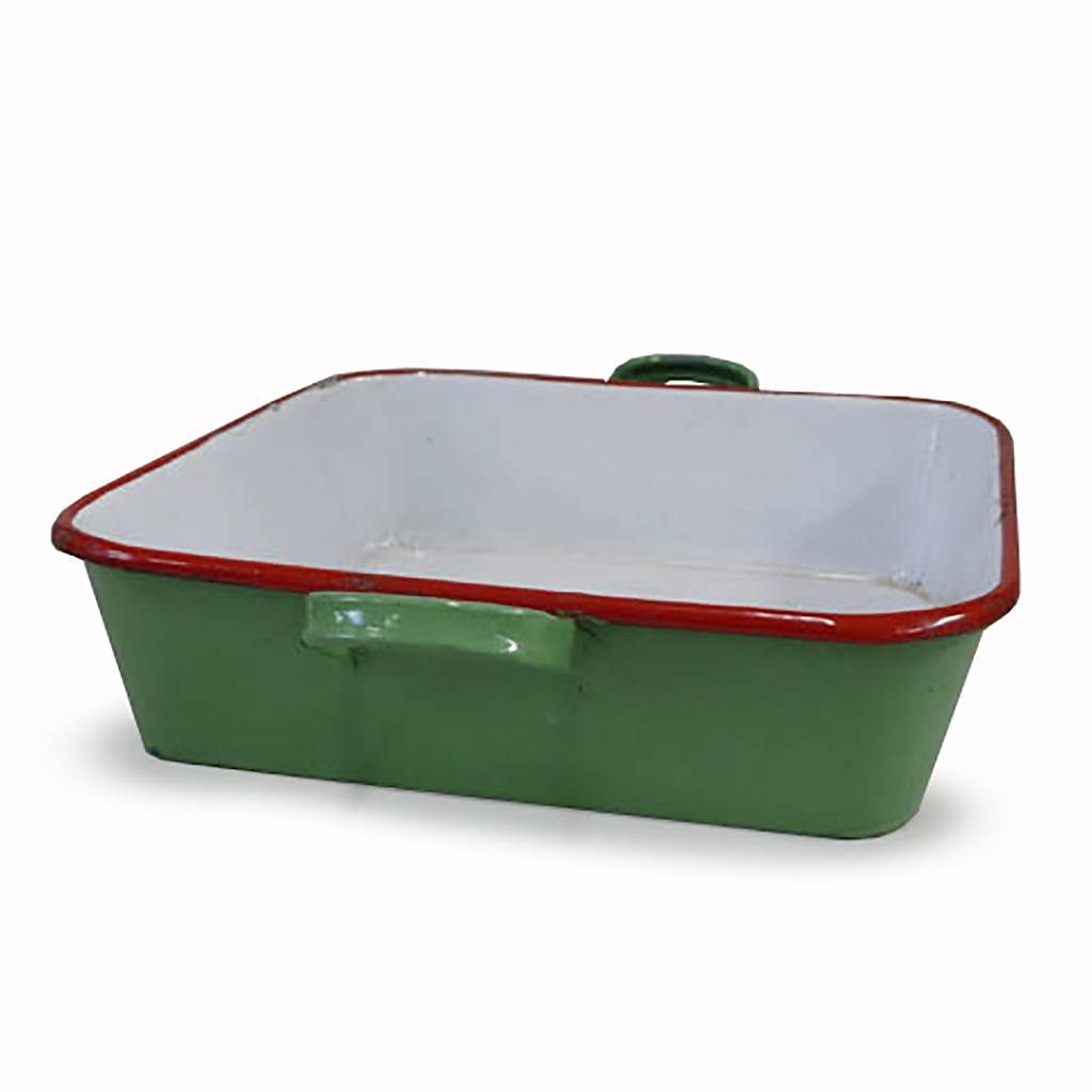 ENAMEL TIN OBLONG BAN MARIE TRAY WITH TWO HANDLES (X8)