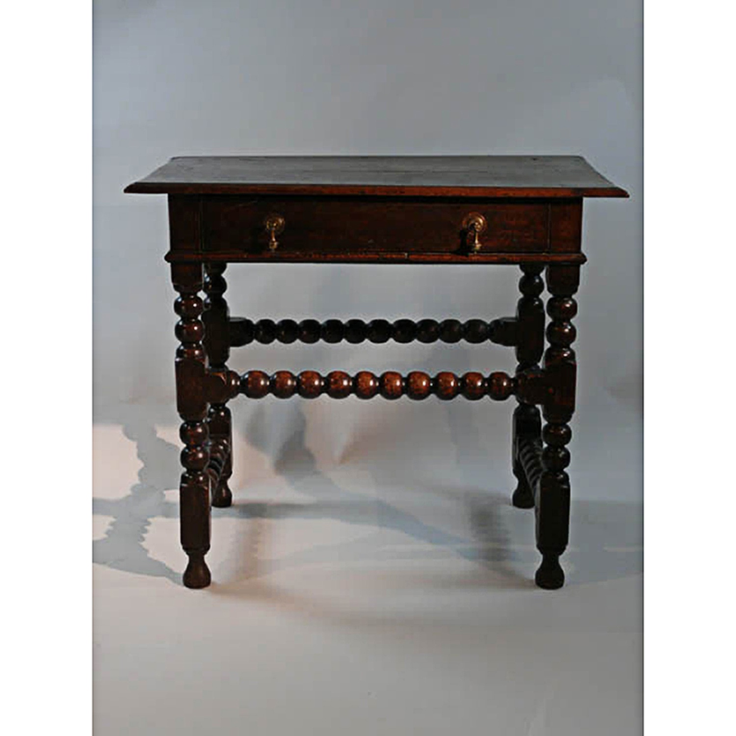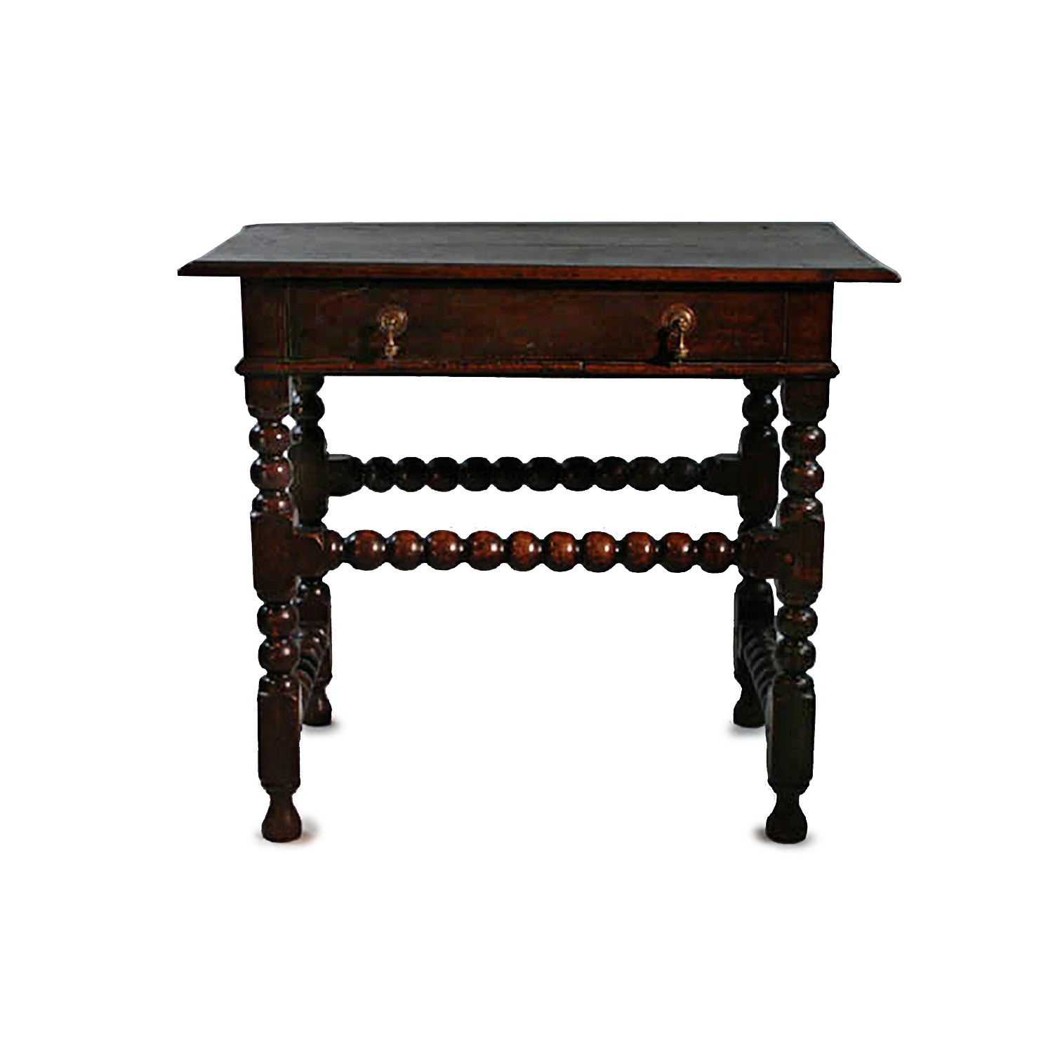 ENGLISH CHARLES II 17TH CENT. DARK OAK SMALL TABLE WITH BOBBIN TURNED LEGS STRETCHERS SINGLE DRAWER 85 CM LONG 54 CM DEEP 74 CM HIGH