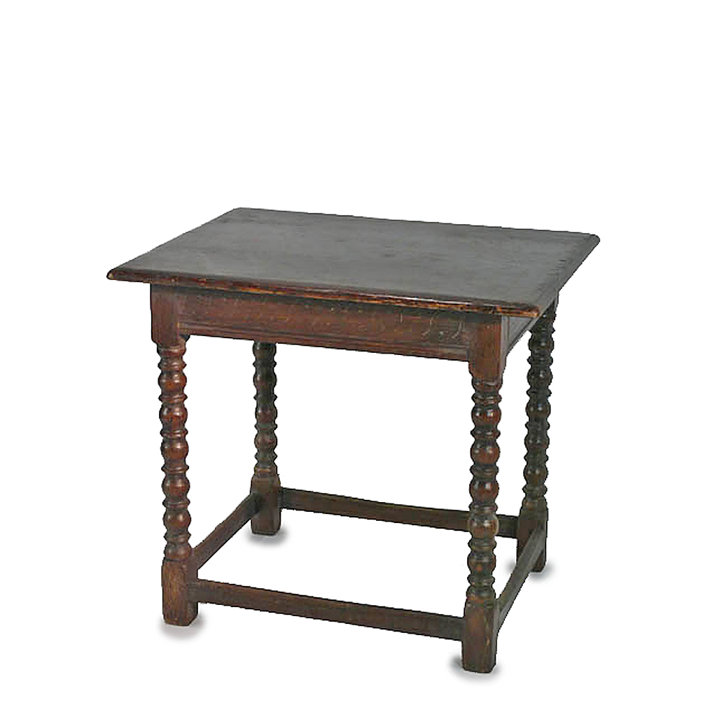 ENGLISH CHARLES II DARK OAK TABLE RECTANGULAR WITH BOBBIN TURNED LEGS LATE 17TH CENT. 75 CM LONG 56 CM DEEP 68 CM HIGH