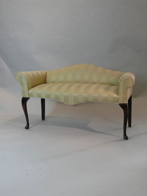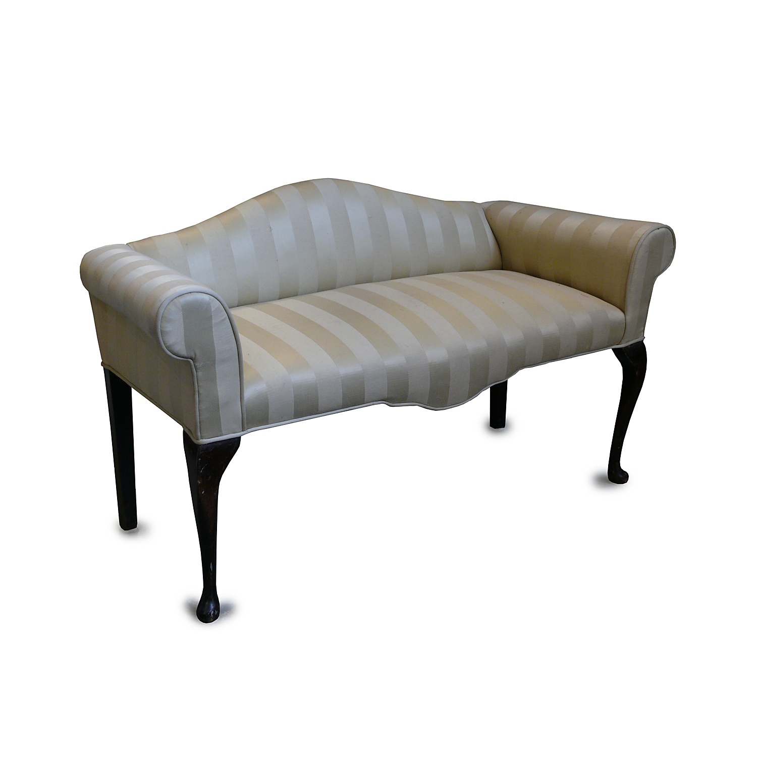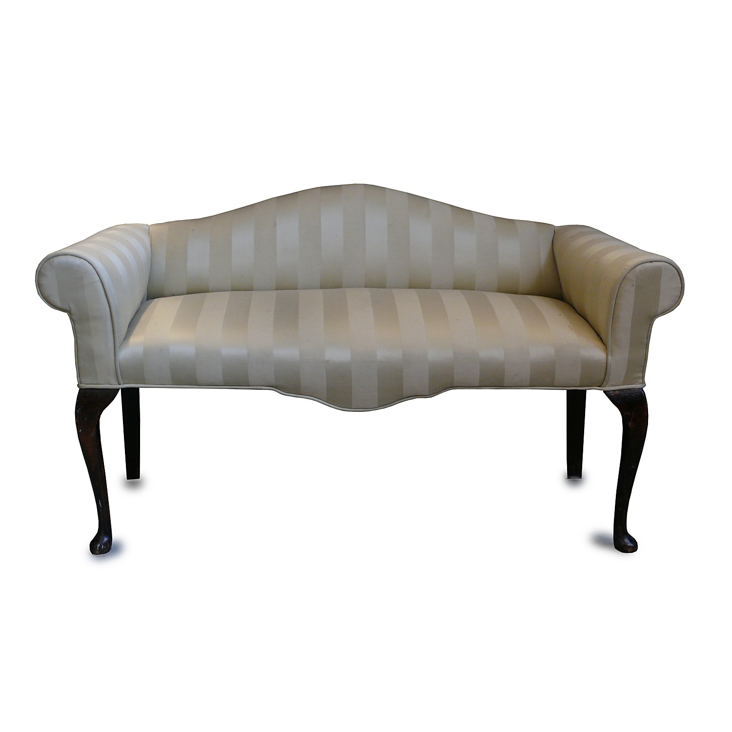 ENGLISH MINIATURE CAMEL BACK SETTEE / SOFA / STOOL CREAM UPHOLSTERY 67 CM HIGH 120 CM LONG 54 CM DEEP