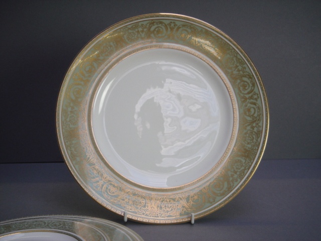ENGLISH RENAISSANCE DOULTON DINNER PLATE GREEN GOLD BORDER 27 CM (X35)