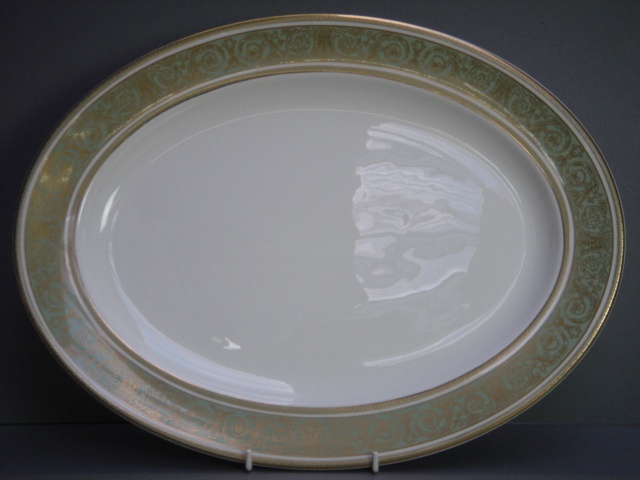 ENGLISH RENAISSANCE DOULTON LARGE OVAL PLATTER GREEN GOLD BORDER 41 CM (X2)
