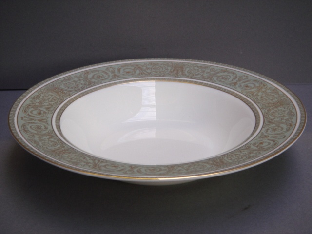 ENGLISH RENAISSANCE DOULTON SOUP BOWL GREEN GOLD BORDER (X22)