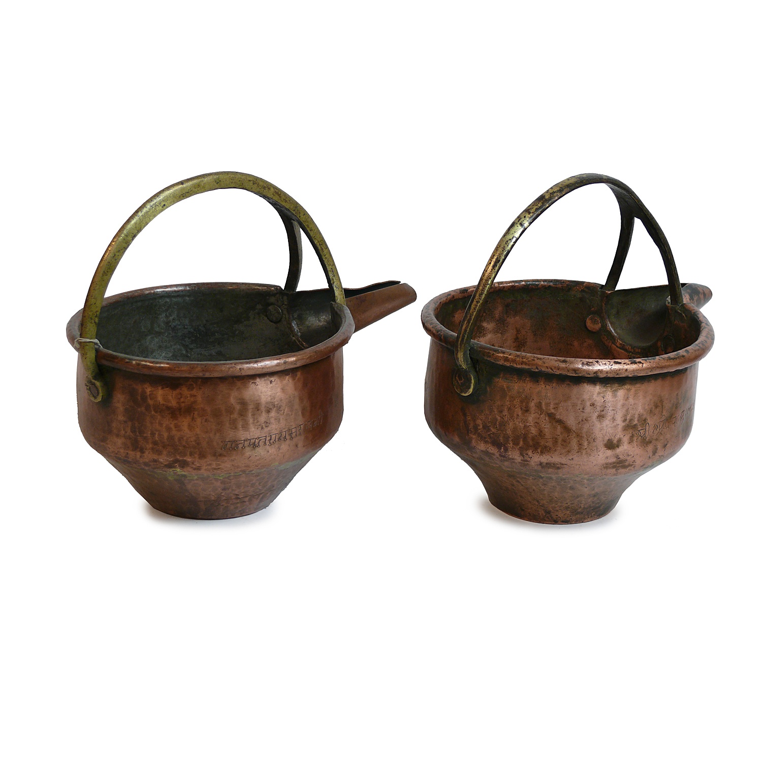 ETHNIC COPPER KETTLE / JUG WITH BRASS BUCKET HANDLE 21 CM DIAM (X2)