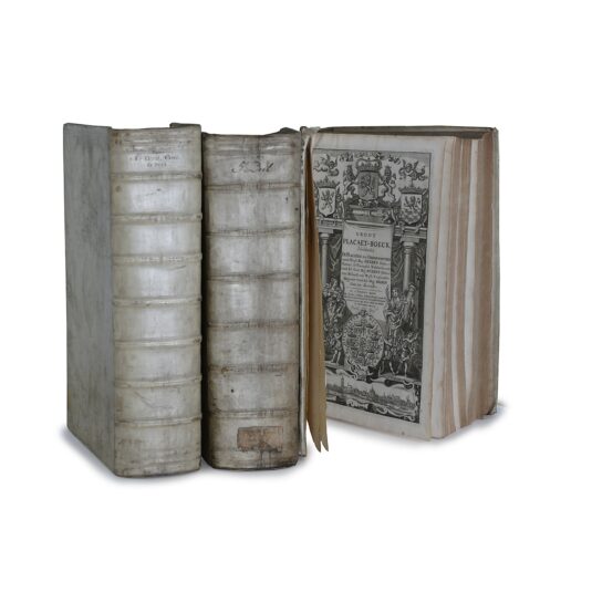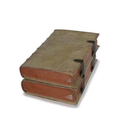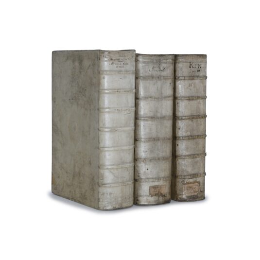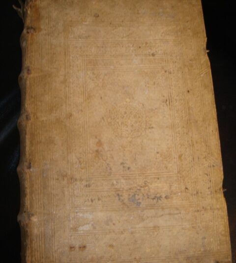 EXTRA LARGE 17TH CENTURY CREAM EMBOSSED VELLUM BOOK WITH CLASPS