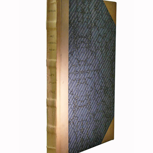 EXTRA LARGE CREAM BOUND BOOK WITH BLUE MARBLED SIDES 60 CM