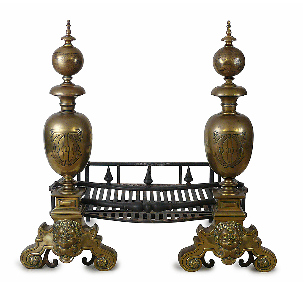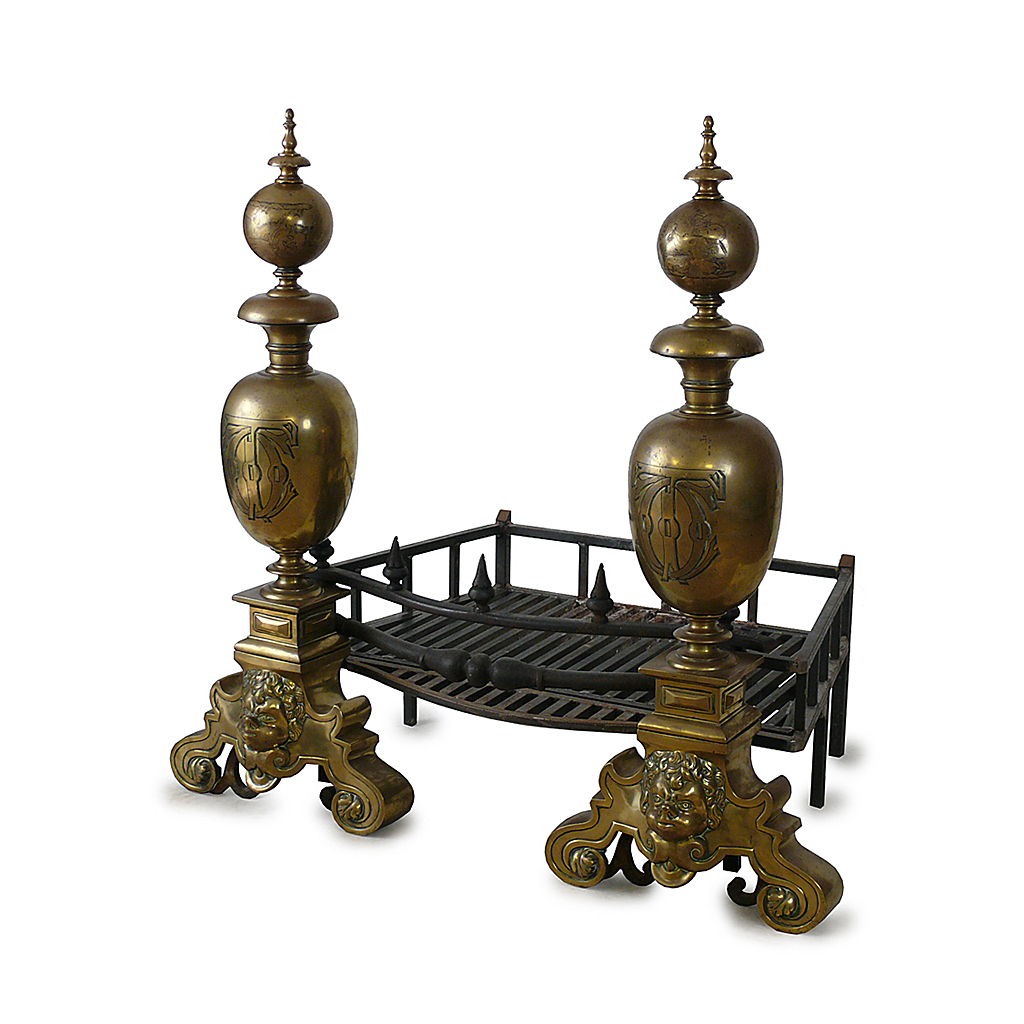 EXTRA LARGE FIRE GRATE / BASKET THE DOGS ENGRAVED WITH INITIALS TCC ENGLISH LATE 18TH CENT 120 CM HIGH 128 CM WIDE 87 CM DEEP