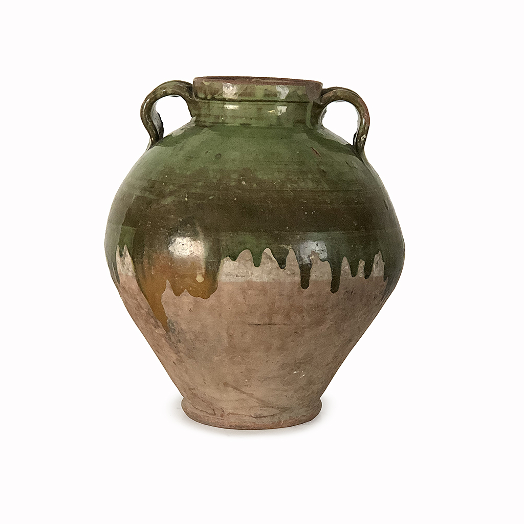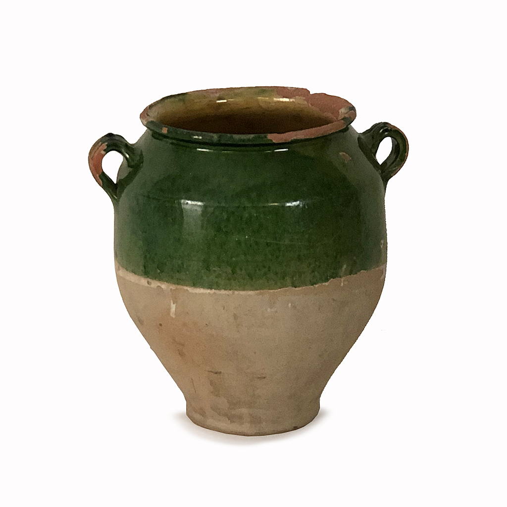 EXTRA LARGE FRENCH CONFIT JAR DARK GREEN GLAZED WITH TWIN LOOP HANDLES 32 CM 35 CM HIGH (X2)
