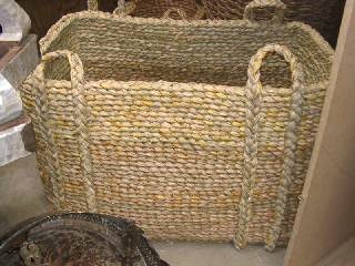 EXTRA LARGE OBLONG PLAITED RUSH / CANE LOG BASKET