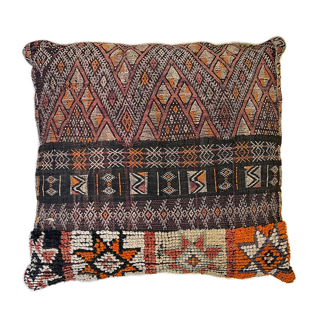 EXTRA LARGE SQUARE ETHNIC CARPET FLOOR CUSHION WITH GEOMETRIC DESIGN AND PLUSH WOLL EDGE 90 CM X 90 CM