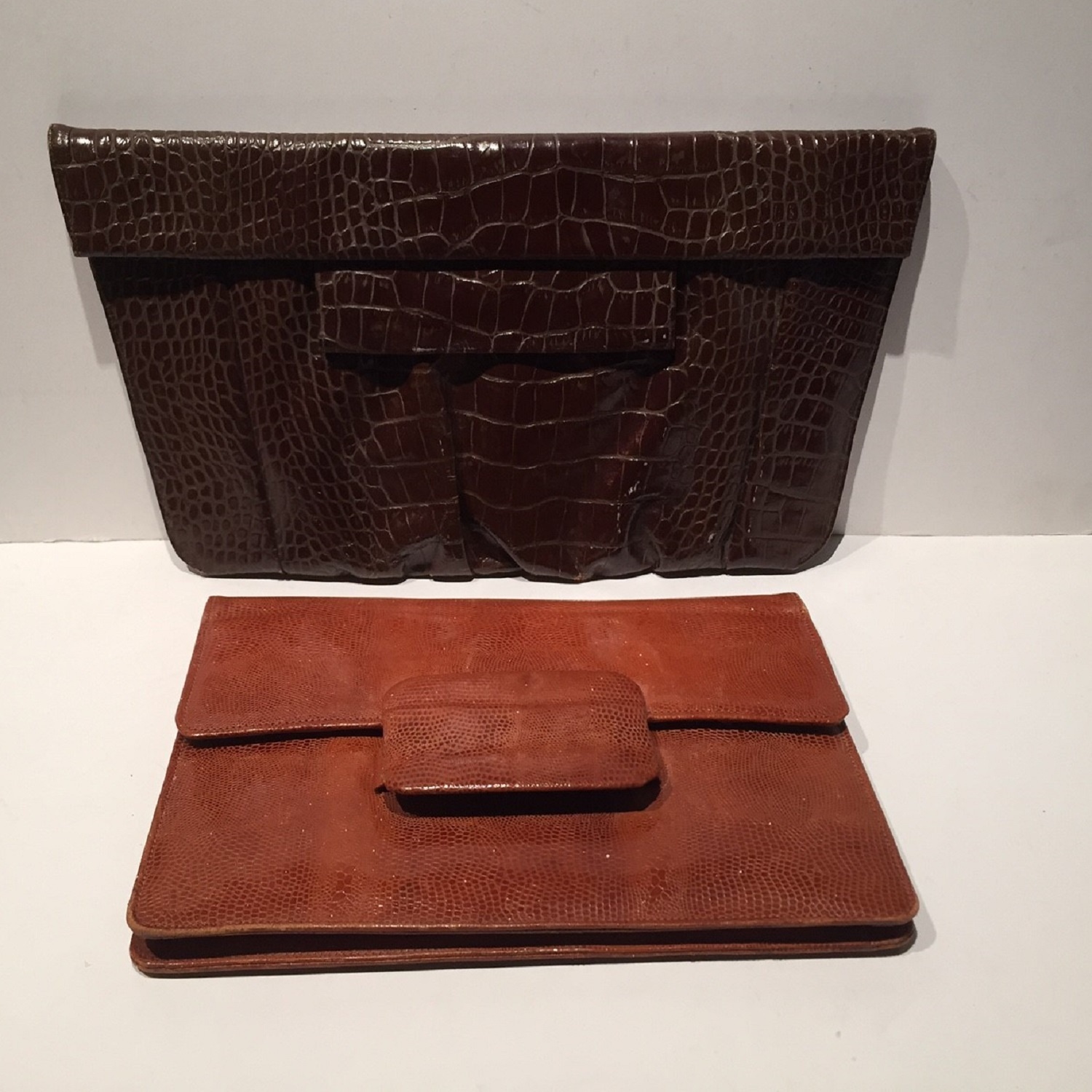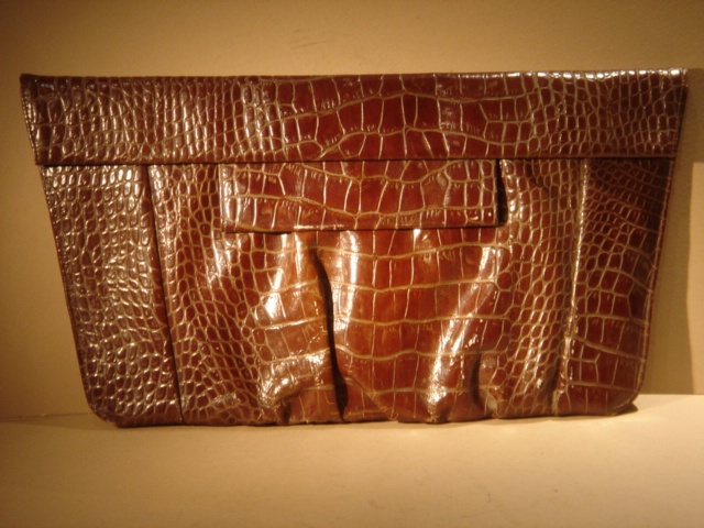 EXTRA LARGE TAN CROCODILE SKIN CLUTCH HANDBAG 42 CM WIDE