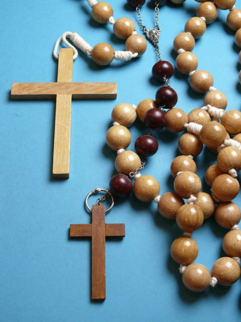EXTRA LARGE WOOD BEAD ROSARY WITH PLAIN CRUCIFIX / CROSS