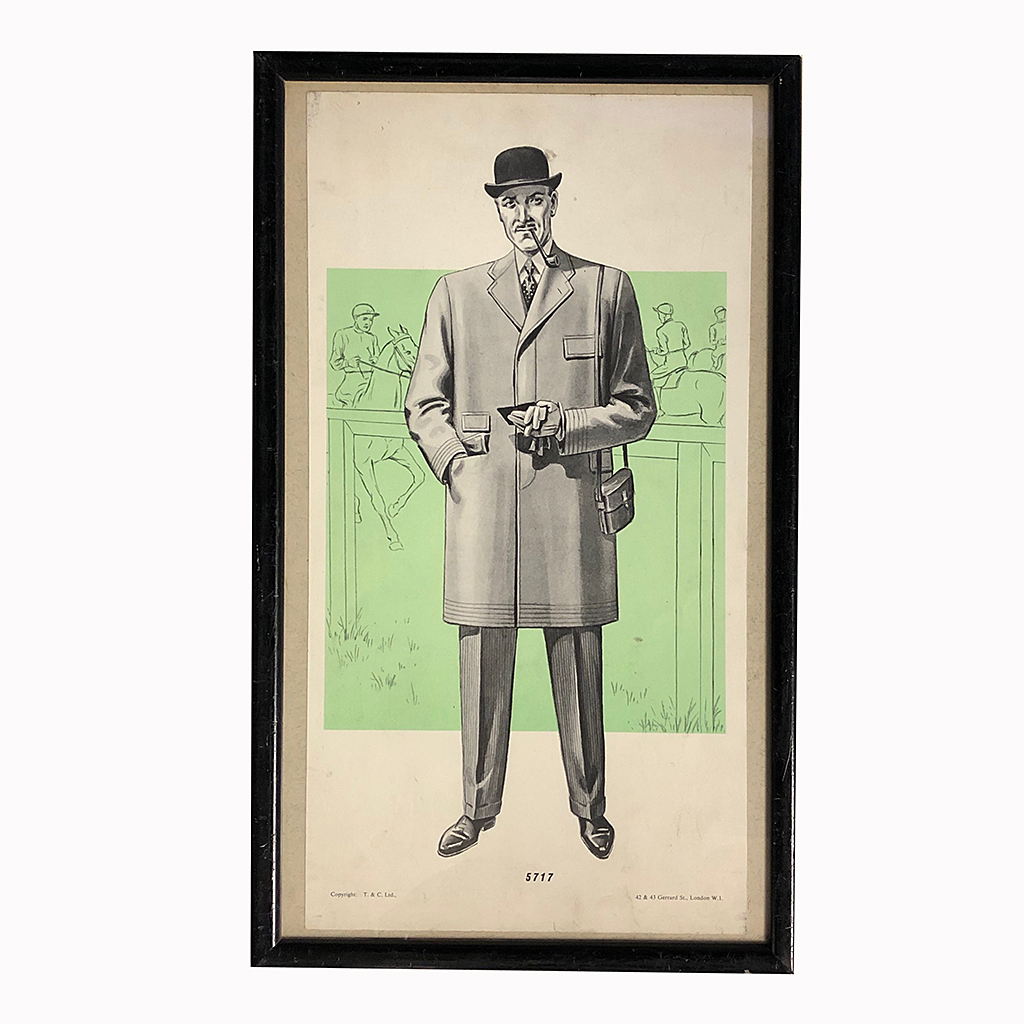FASHION PRINT GENT WITH BOWLER HAT AND OVERCOAT IN A BLACK FRAME 14/i X 12/i