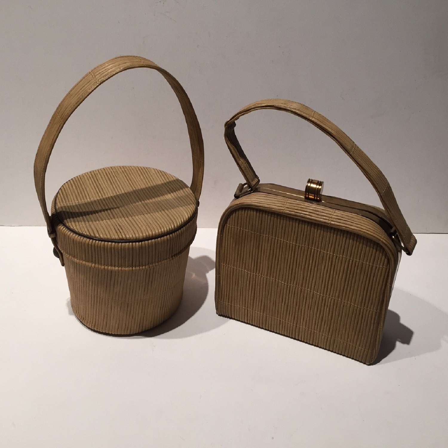 FAUX BAMBOO / RAFFIA BOX STYLE HANDBAG AS LISTED