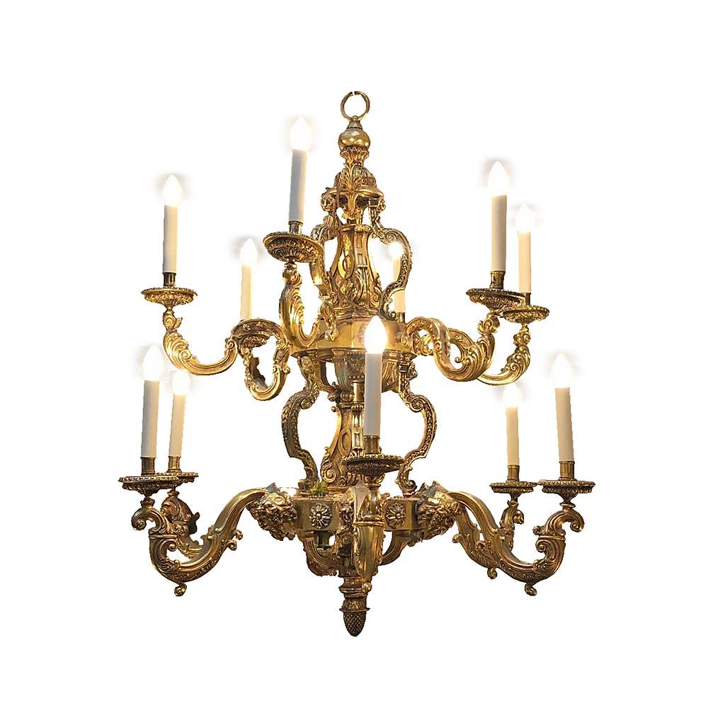 FAUX GILT BRONZE FRENCH CHANDELIER IN REGENCE STYLE 12 LIGHT WIRED FOR ELECTRICITY ONLY 126 CM HIGH 104 CM DIAM