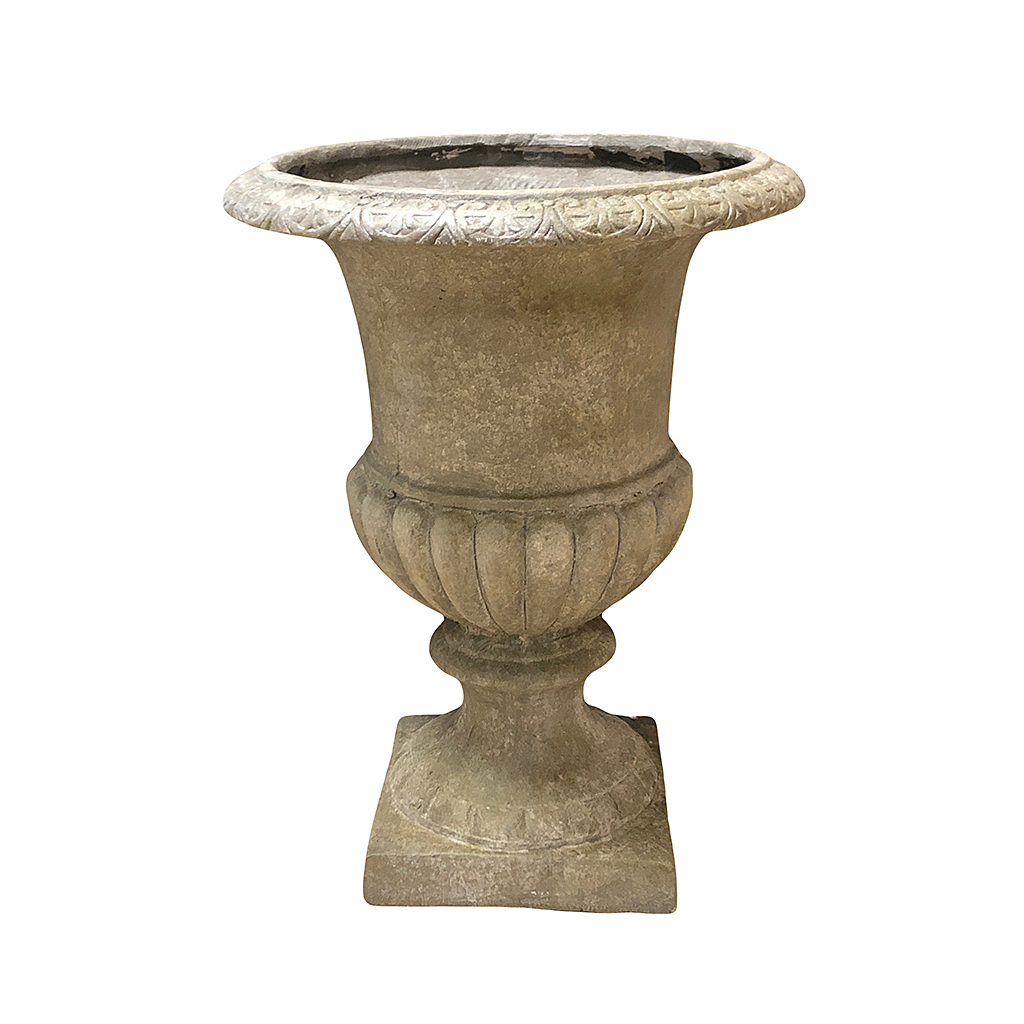FAUX STONE CAMPANA FLUTED GARDEN URN 45 CM HIGH 34 CM DEEP
