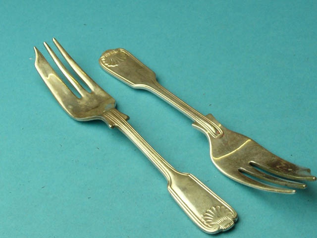 FIDDLE THREAD AND SHELL SILVER PASTRY FORK