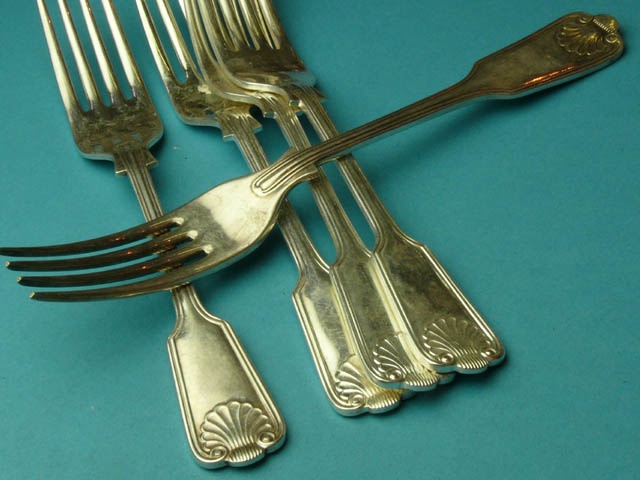 FIDDLE THREAD AND SHELL SILVER TABLE FORK
