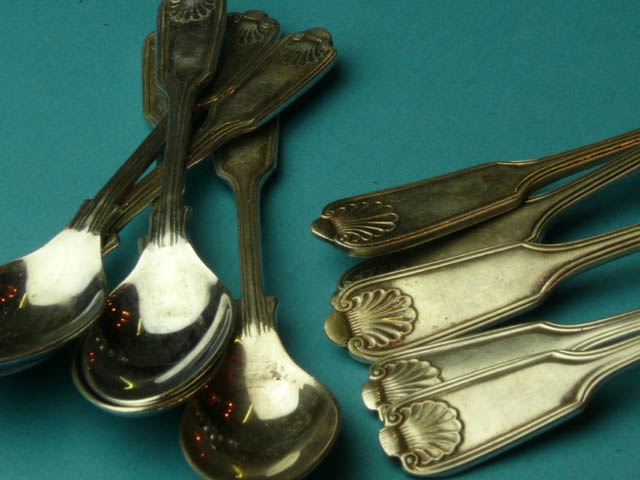 FIDDLE THREAD AND SHELL SILVER TEA / COFFEE SPOON