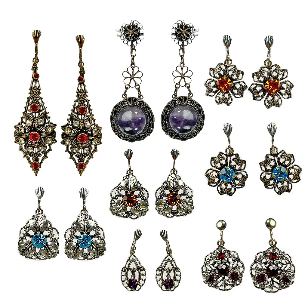 FILIGREE EARRINGS WITH COLOURED PASTE