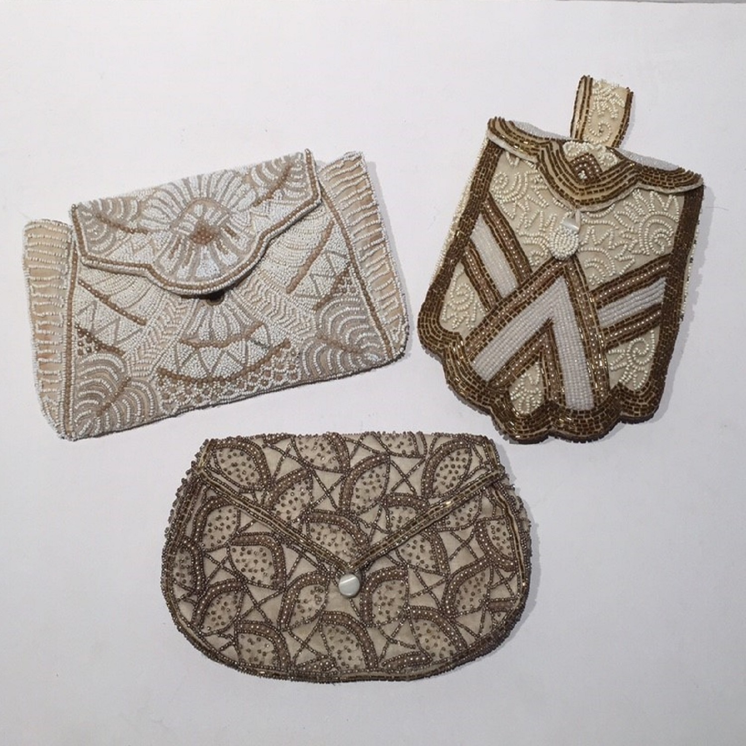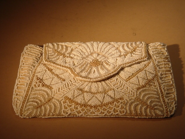 FINE CREAM AND WHITE SEQUINED CLUTCH HANDBAG AS LISTED