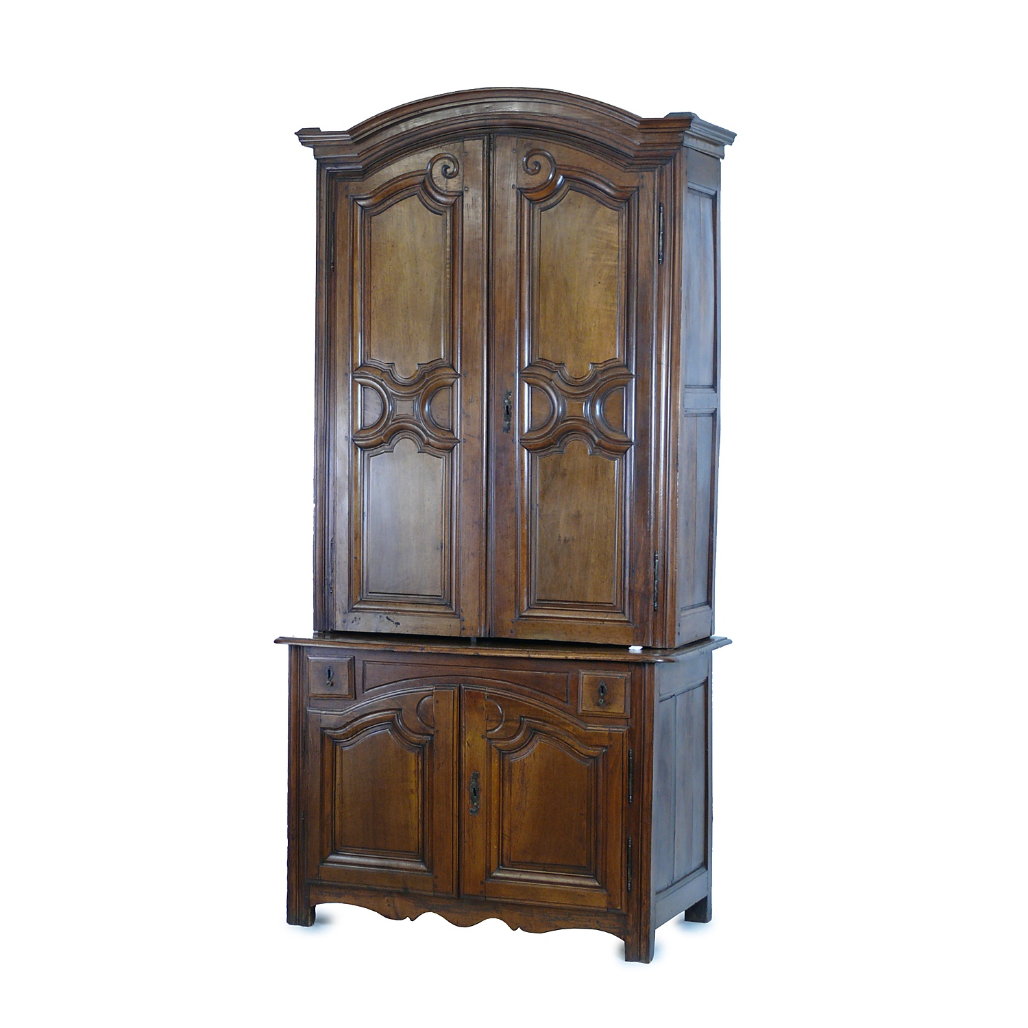 FINE FRENCH PROVINCIAL BUFFET DEUX CORPS / CUPBOARD LIGHT FRUITWOOD CIRCA 1750 229 CM HIGH 115 CM WIDE 57 CM DEEP