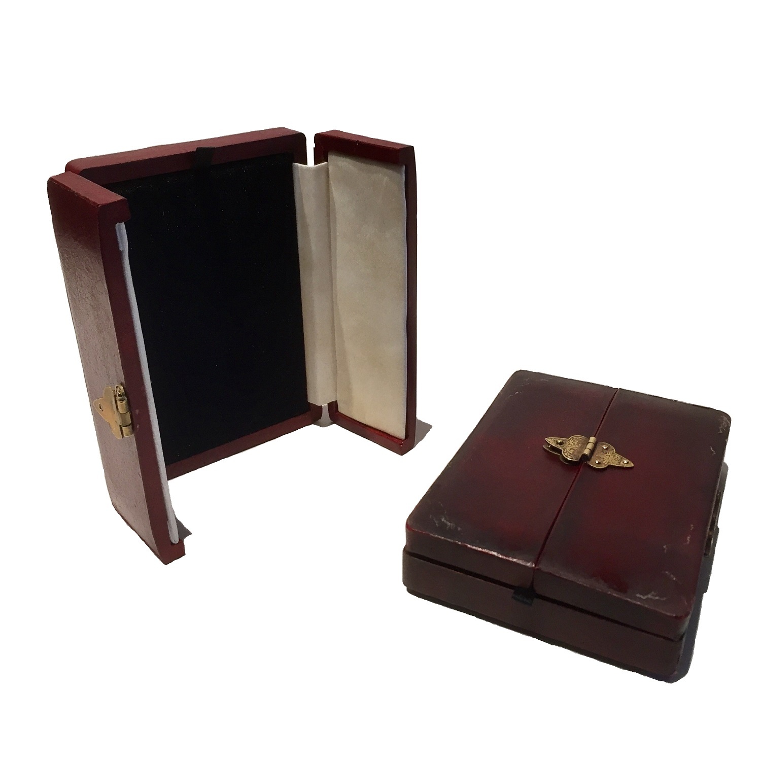 FINE LEATHER JEWELLERY PRESENTATION GIFT BOX WITH HINGED DOUBLE LID AND DISPLAY STAND