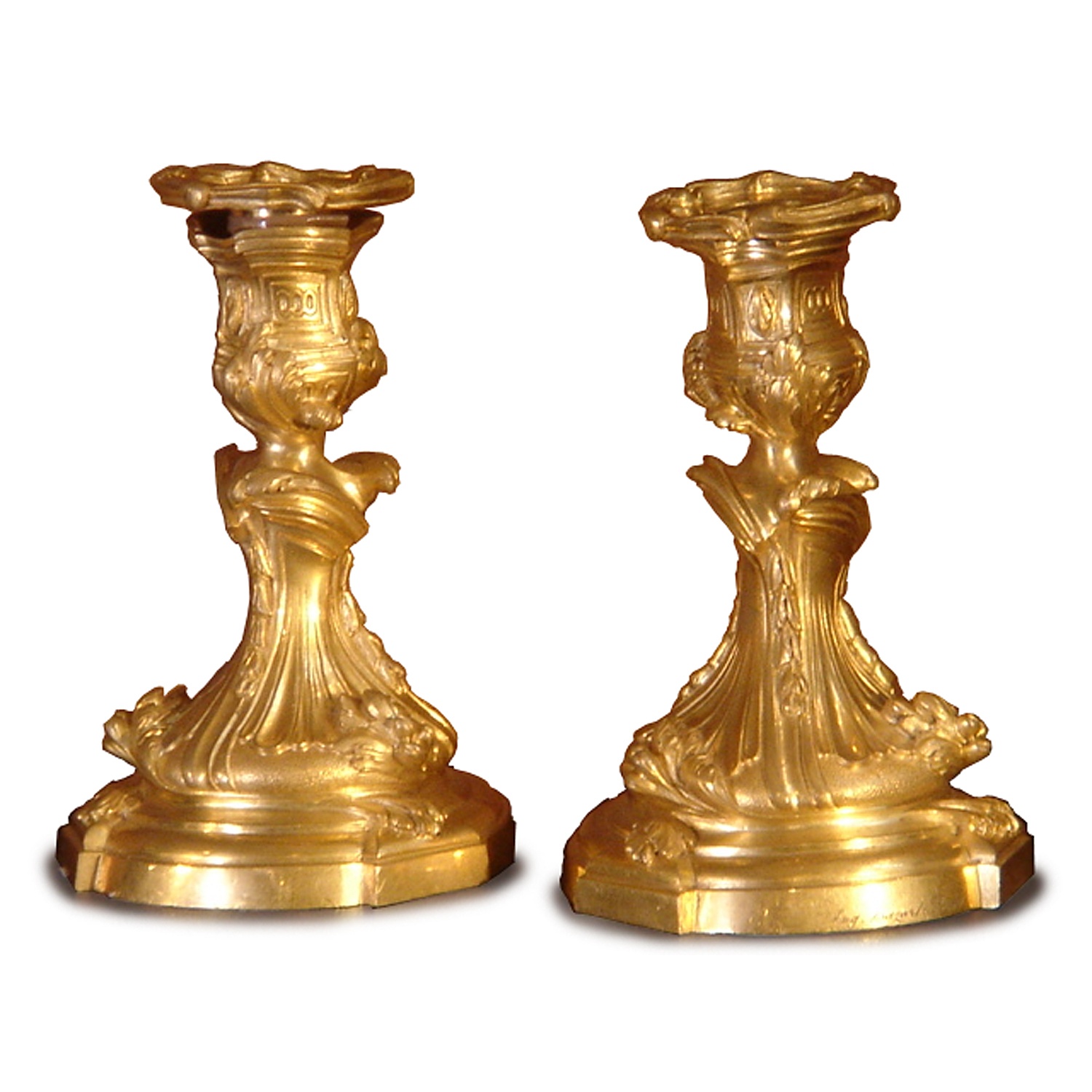 FINE ORMOLU LOUIS XV CANDLESTICK SIGNED EUG. BAZART PARIS 15 CM HIGH 11 CM WIDE (X2)