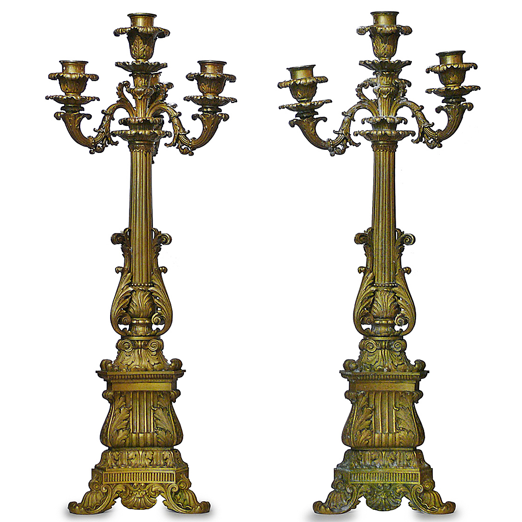 FINE ORMOLU LOUIS XVI CANDELABRA FOUR LIGHT 25/i HIGH (X2)