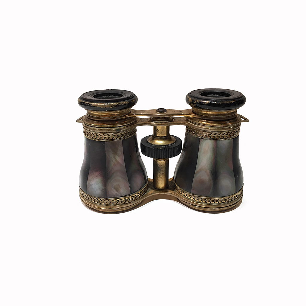FINE ORNATE BRASS OPERA GLASSES WITH SMOKEY MOTHER OF PEARL CASING (PERFECT CONDITION)