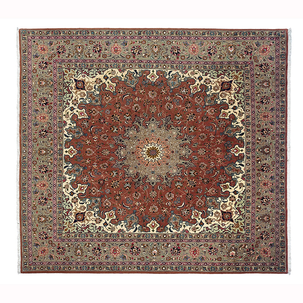 FINE PERSIAN TABRIZ CARPET / RUG CHESTNUT BROWN CENTRE WITH WIDE BORDER 8í 3/i X 8í 1/i 250 CM X 246 CM