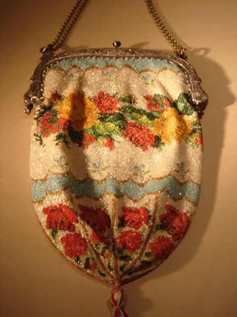 FLORAL BEADED HANDBAG WITH A SILVER TOP 18 CM WIDE
